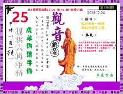 354期开奖时间2025年12月20 星期六)晚9:30开(农历十一月初一 猪冲蛇)
